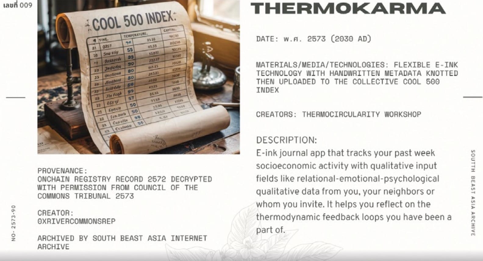 We’re not just imagining by ourselves, but also creating and sharing scaffolding for others. For example, we created a tool called the Protocol Design Fiction Canvas for a workshop earlier this year. It’s a way to build imagined worlds through designing their component artifacts, systems and protocols. This is what we more or less used in the building of South Beast Asia earlier this year. It’s now released for groups and facilitators to use under a Creative Commons license. Anyone can use it. Some already have.